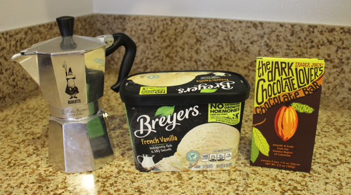 2.エスプレッソとチョコレートシロップをステンレスボウルに入れます。
